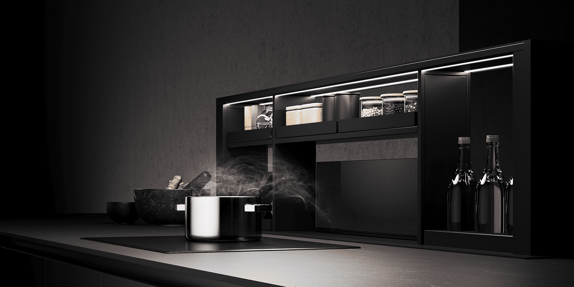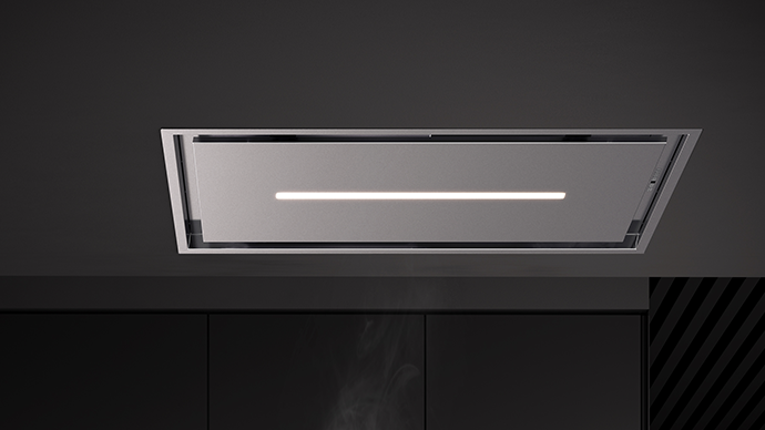Po končanem kuhanju napa še naprej prezračuje v tihem načinu, dokler se kakovost zraka ne vrne na normalno raven. Tudi samodejna razsvetljava LED, z zatemnjevanjem in dinamičnim delovanjem v skladu z barvno temperaturo, se lahko prilagaja slogu kuhinje v katerem koli okolju.